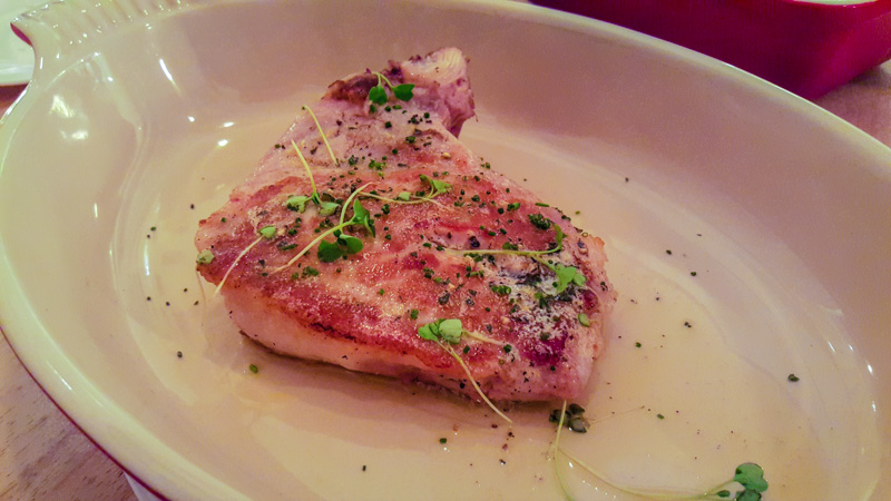 • Chuleta de cerdo ibérico de bellota marinada a las finas hierbas y asada.