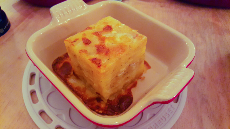 • Mozzarella rellena de esgarraet gratinada con ajoaceite suave.