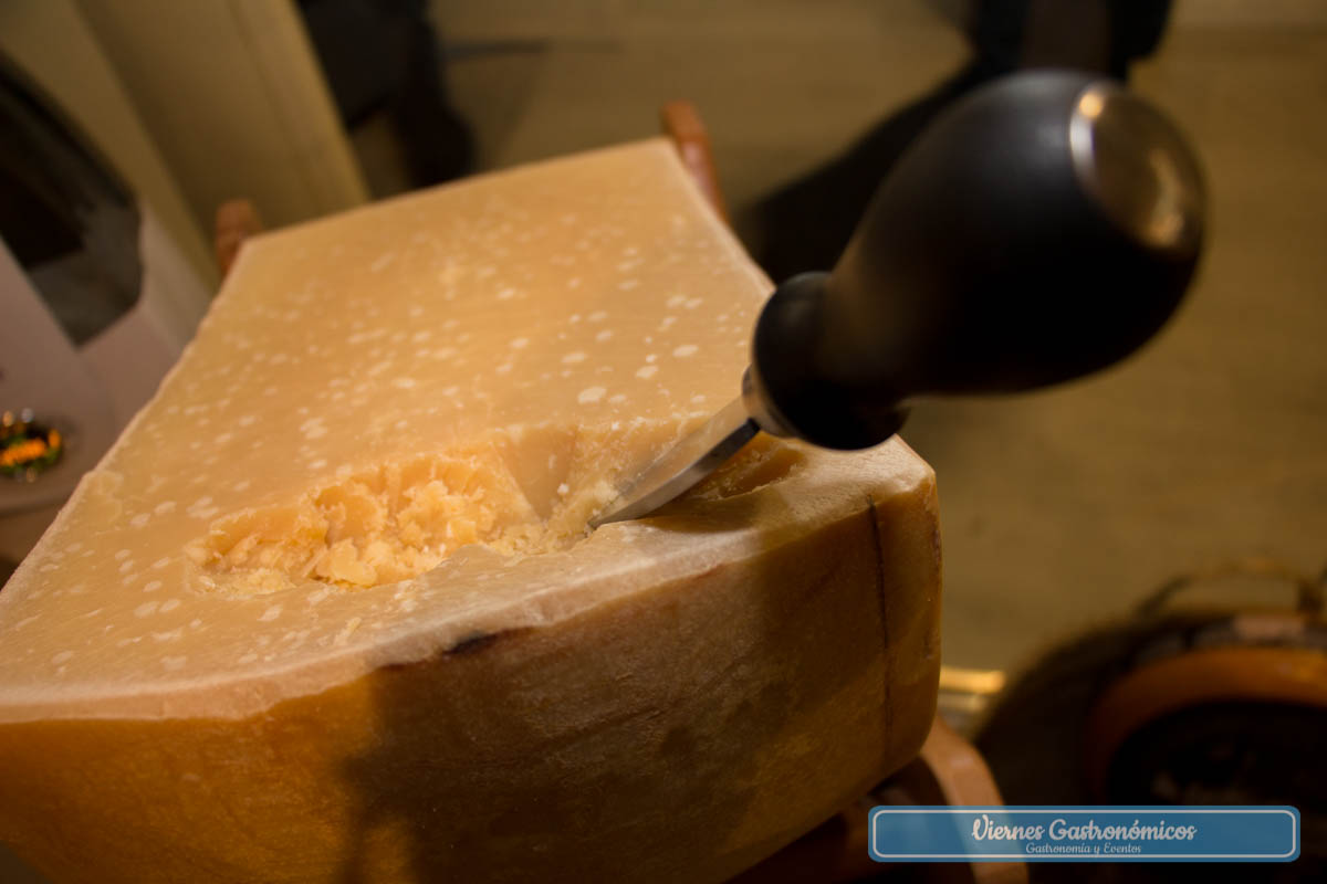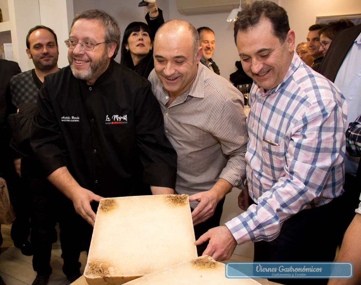 En lugar de cortar la cinta, los socios de La Majada Quesos abrieron el queso más grande de España, una pieza de 60 kilos elaborada hace casi cuatro años por Rubén Valbuena, de la quesería granja Cantagrullas (Valladolid), con 650 litros de leche de oveja de trashumancia de raza castellana.
