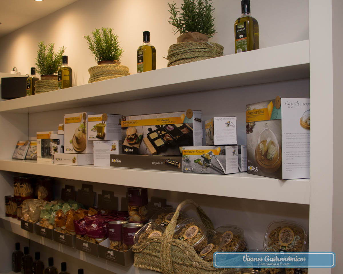 El nuevo espacio gastronómico ha abierto con más de ciento cincuenta quesos artesanales, entre ellos, los quesos lácticos más reconocidos del país y de los mejores del mundo, como son los de cabra de Elvira García, Sabina y Cueva de la Rueda. De Francia proceden los célebres Morbier elaborados por Marcel Pétite, uno de los mejores afinadores de este queso de vaca con denominación de origen.