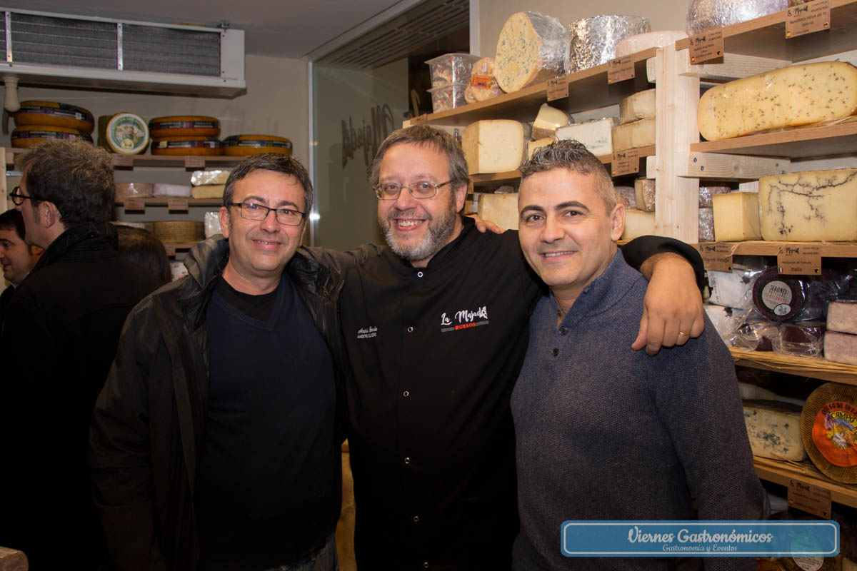 A la inauguración, celebrada ayer, asistieron, entre otros, los principales maestros queseros de la Comunidad Valenciana, además de María Jesús Jiménez, presidenta de la Red Española de Queserías de Campo y Artesanas (QueRed) y galardonada por el premio internacional Slow food, por su lucha por la conservación de las pequeñas quesería; Guillermina Sánchez Cerezo, experta en quesos de Quesería Cultivo; Pepe Bada, uno de los afinadores de quesos más importantes de España, creador del queso Teyedu con D.O. Cabrales; Ángel Valeriano, maestro quesero en Los Corrales de Almedíjar; Mario Romero, gerente de Selección Gastronómica; Aitor Luis Vega, maestro quesero y experto en quesos asturianos. También asistieron el panadero Jesús Machi y el pastelero Salvador Pla, ambos proveedores de La Majada, y representantes de las principales bodegas de la Comunidad Valenciana.