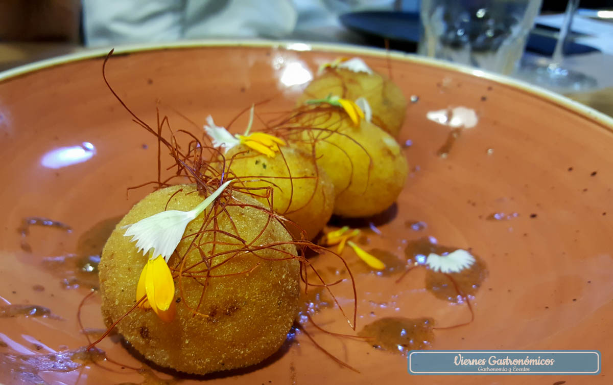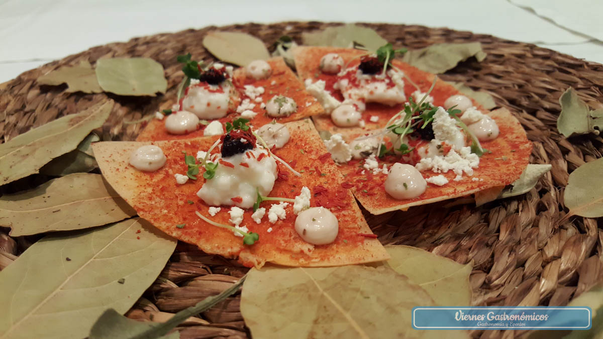 El menú empezó con unas ostras valencianas texturizadas en escabeche y con granizado de agua de naranja; y nórdicas con remolacha smoker y crema agria maridadas con Opus Evolution Gran Reserva. Le siguió una reinterpretación de la pizza y una ensaladilla llena de matices, acompañada de Mersé con uva 100% Merseguera.