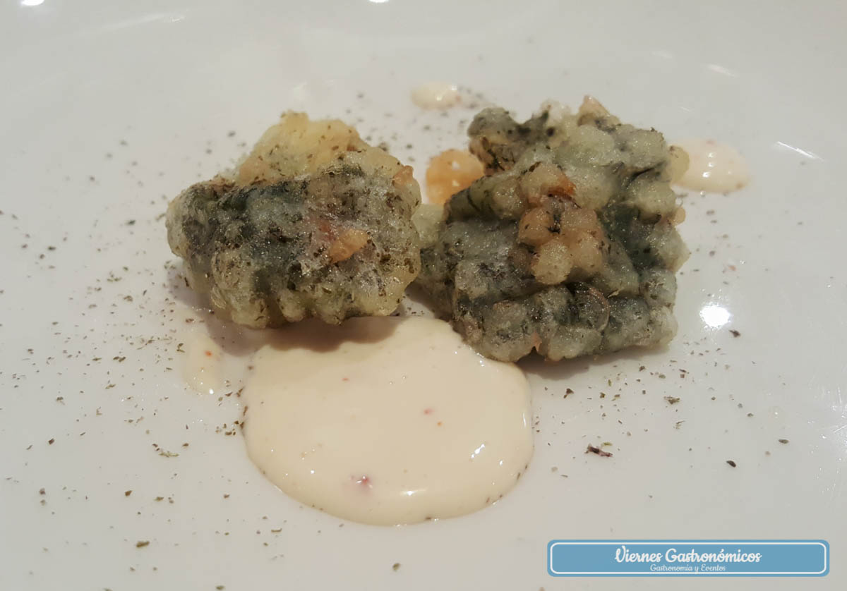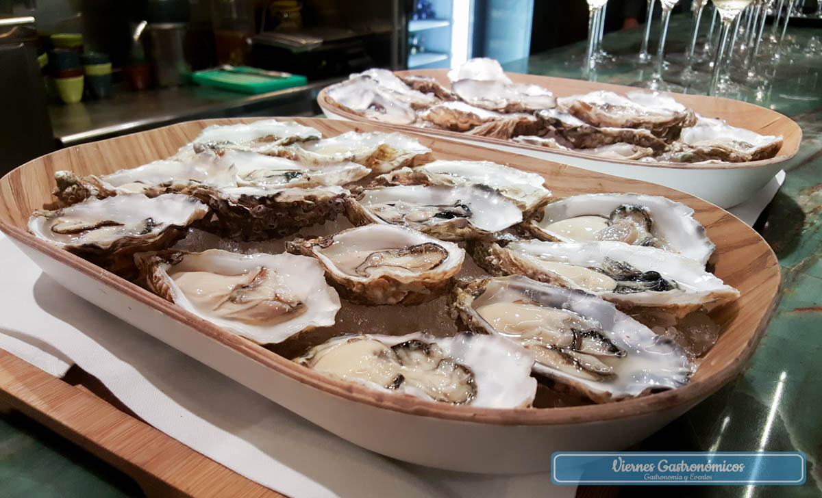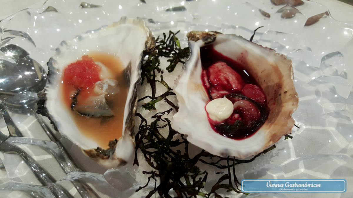 Así, el joven cocinero de Roca-Cuiper comenzó con una degustación de ostras naturales (Marens Olerón) por parte de Oyster & Co. maridadas con el champagne Lallier (brut y brut nature), considerada una de las mejores bodegas del mundo.